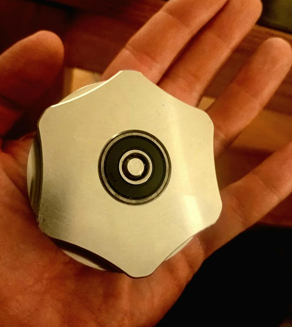 The ultimate threadless grinder, with replaceable skateboard bearing, no metal-on-metal grinding, easy to grip with a flat side design.